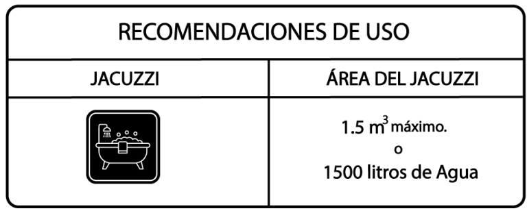 • Ideal para calentamiento de jacuzzis con capacidad máxima de 1500 Litros.